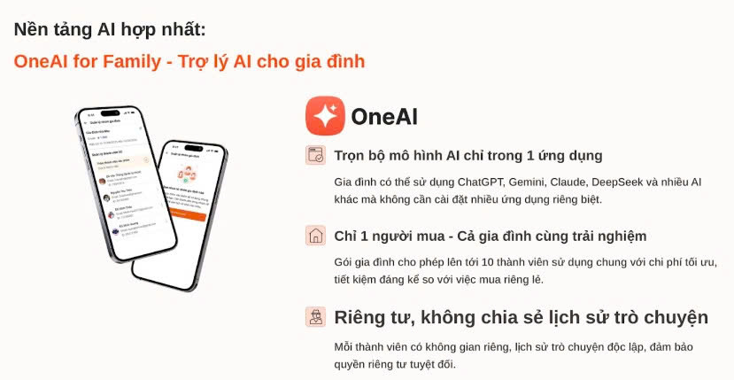 Nền tảng AI hợp nhất OneAI for Family - Trợ lý AI cho gia đình.